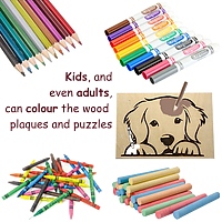 Laser Burnt Plaques and Puzzles can even be coloured with crayons, pencil crayons, markers, and even chalk.